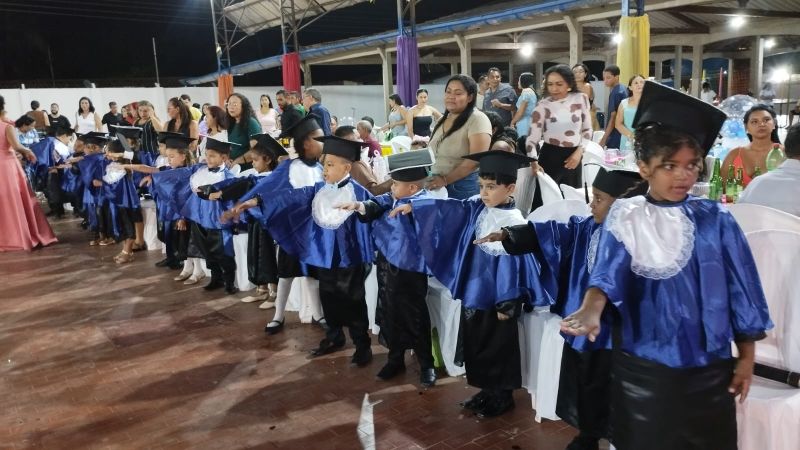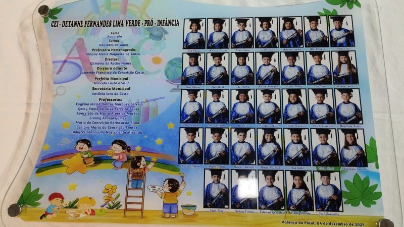 Promovida pela Prefeitura de Valença do Piauí, por meio da Secretaria Municipal de Educação (SEME), a solenidade marcou um momento especial na vida escolar das crianças. A diretora da unidade, Gilmária Rocha, destacou a alegria em celebrar a primeira conquista acadêmica dos pequenos.