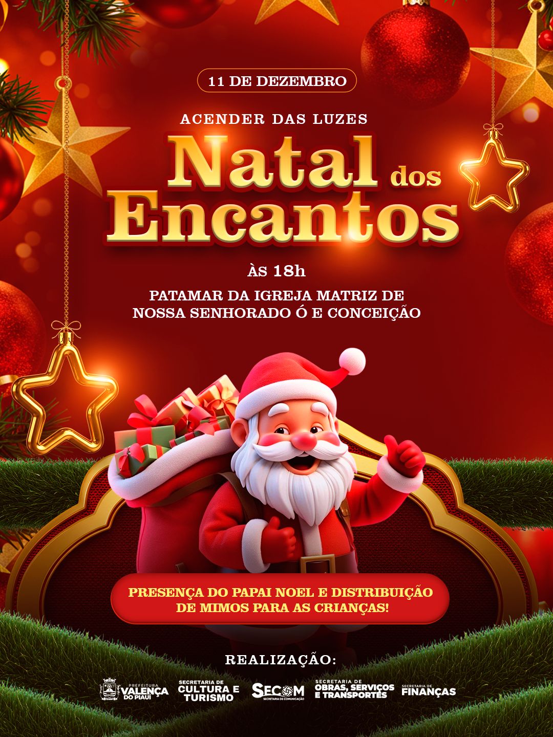 Além do acendimento, a noite contará com distribuição de mimos para as crianças e a presença especial do Papai Noel, tornando o evento ainda mais mágico para as famílias valencianas.