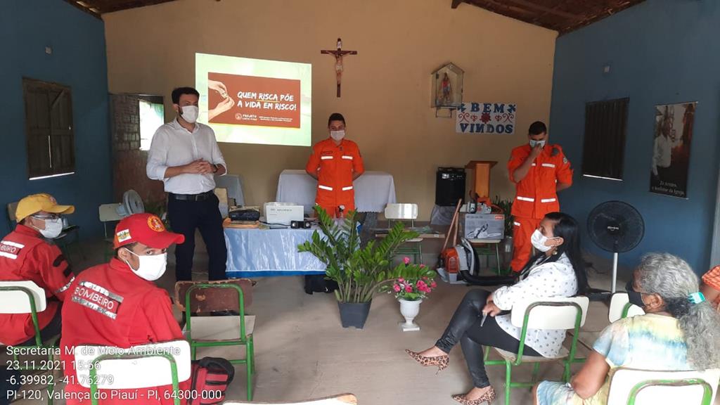Data: 24/11/2021A Secretaria Municipal de Meio Ambiente de Valença do Piauí, realizou nesta terça-feira 23 de novembro, uma palestra sobre “Prevenção e Combate ao Incêndio Florestais” no Assentamento Barro Preto. O momento informativo foi ministrado pelos Soldados Afonso e Barros do Corpo de Bombeiros do Estado do Piauí.