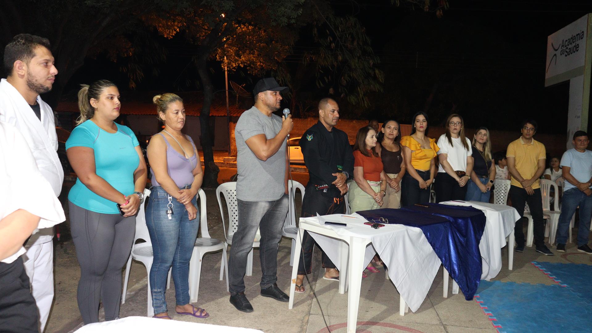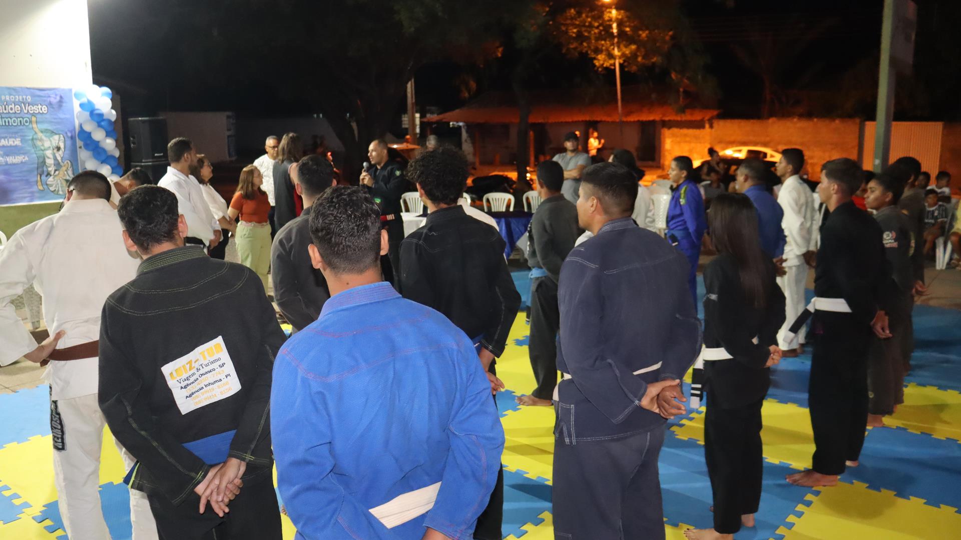 Data: 19/10/2023A Praça Teodomiro Lima Verde (Praça da Prefeitura), em Valença do Piauí, foi o palco do lançamento do projeto “Saúde Veste Kimono”, que atenderá inicialmente 33 pessoas de ambos os sexos e de diferentes faixas etárias com aulas de Jiu Jitsu.